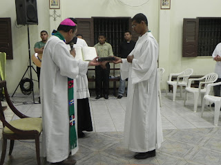 Hoje, as 18:30h na Comunidade N. Sra. da Vitória - bairro Sá Viana, Dom Sebastião Duarte, presidiu a Santa Missa concelebrada pelos reitores dos Seminários, Pe. Ivanildo e Pe. Deucimar, e entregou o ministério de leitor ao seminarista Luis Fernando (conhecido como "capuchinho"). Deus abençoe este nosso irmão seminarista e a Diocese de Vianda que está celebrando as Santas Missões Populares.